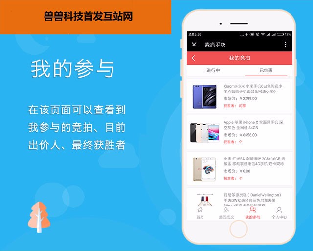 用户前台,可以参与竞拍,